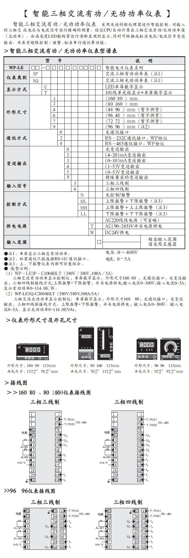 智能三相交流有功、無功功率儀表